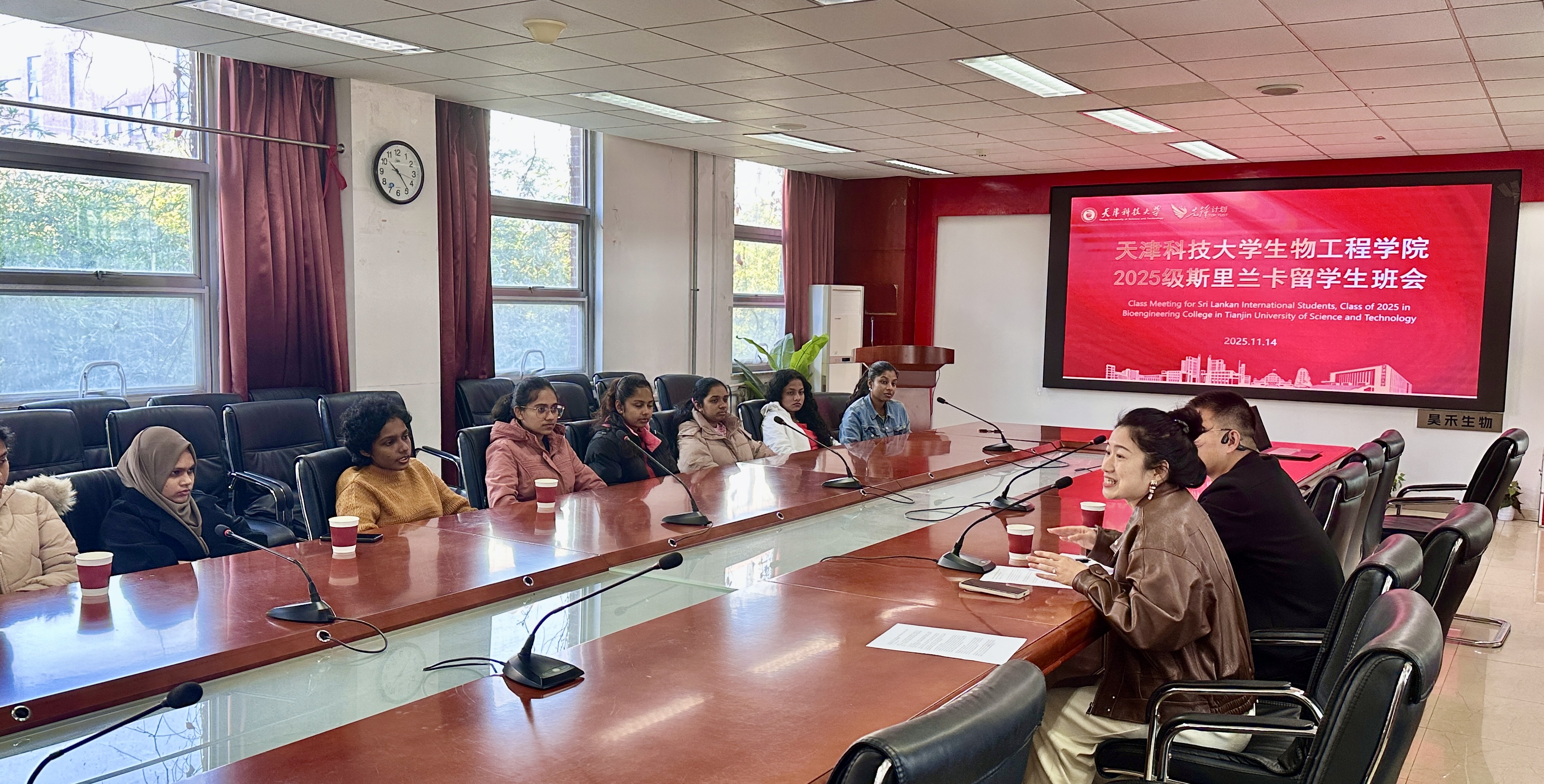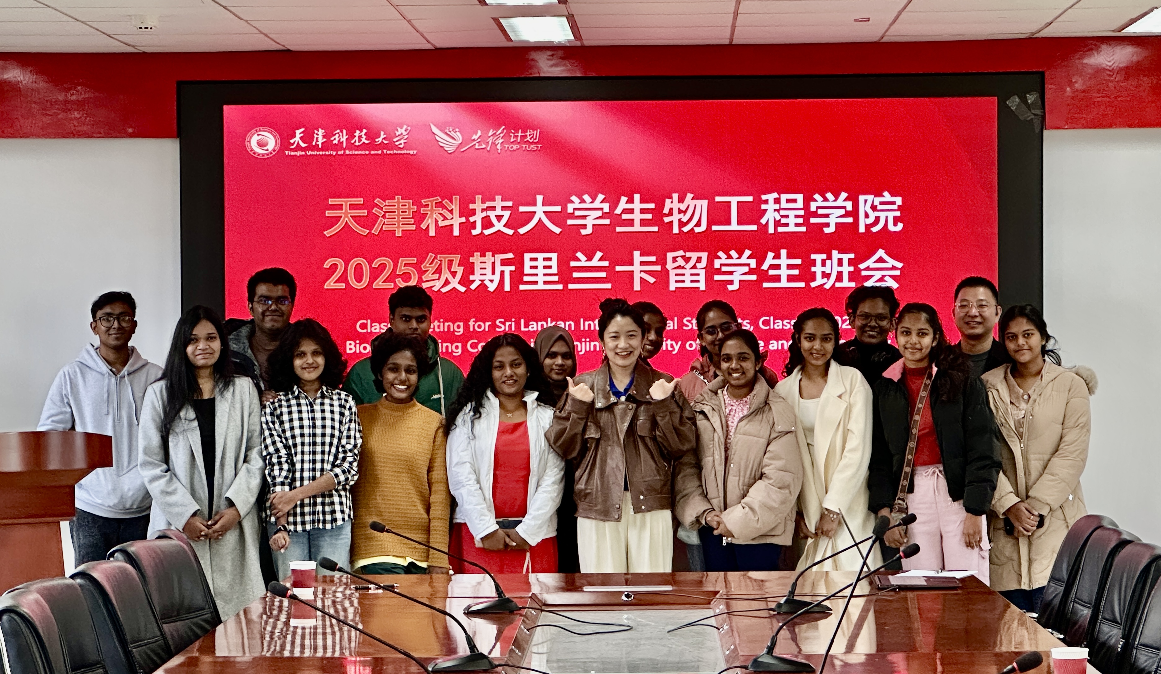 为深入贯彻落实国家“一带一路”倡议、深化国际教育合作、推动高等教育高质量发展,让来华留学生更好融入新环境、明确学业规划,天津科技大学2025级斯里兰卡生物工程全英文班首次班会于11月14日在滨海校区2号楼208会议室顺利举行。2025级斯里兰卡生物工程全英文班班导师吕晓彤、辅导员赵华民、留学生班助犹然以及2025级全体斯里兰卡新生共同参加。