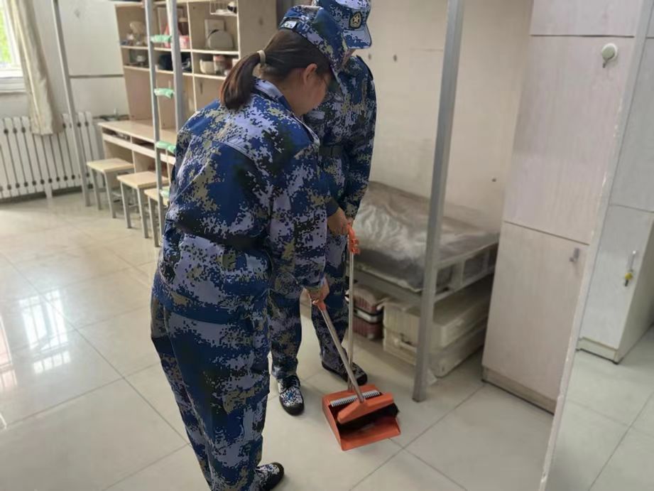 若说训练场是意志的试炼场,那宿舍便是习惯的养成地。为进一步培养学生的自理能力、锤炼严谨素养,学院专项组织内务整理行动。学子们对照标准认真整理:有的蹲在床边反复调整被角弧度,有的主动帮助舍友整理床品、打扫卫生。从最初的“手忙脚乱”到后来的“熟练规范”,从个人物品整理到集体宿舍协作,生工学子将军训中的纪律意识转化为内务整理的自觉行动。