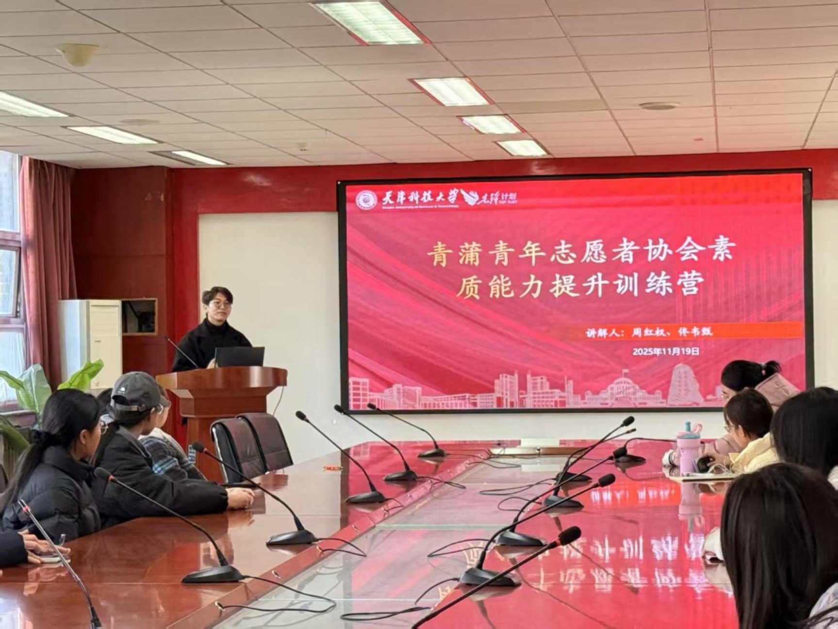 第二阶段以需求精准对接为根基,服务实效落地为核心,由青蒲青年志愿者协会副主席佟韦甄担任主讲。为深入推进志愿服务活动开展,弘扬志愿服务精神,从保障“诺贝尔奖得主校园讲座”的顺利举行,展现高水平的会务接待与协调能力;到精心组织“教职工子女趣味运动会”,传递校园社区的温情与关怀;从热情周到的“迎新生活动”,营造温暖有序的入学氛围;到协助“附近高中生进校参观”,担当积极向上的校园形象使者。青蒲青年志愿者协会将持续致力于为成员提供广阔的实践平台,让志愿精神在具体而微的服务中绽放光芒,为校园文化建设注入持久活力。
