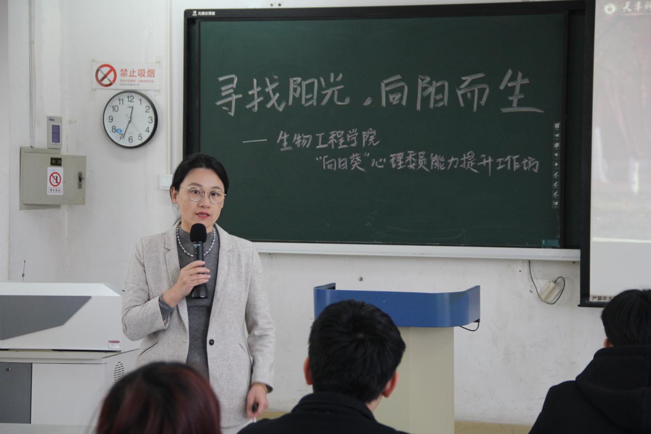 “作为班级心理委员,有哪些工作职责?在维护好自身心理健康的基础上,如何更好的帮助身边的同学,成为他们心理健康的守护者?”为充分调动和发挥心理委员在班级心理健康教育工作中的积极性和主动性,更好地为同学们服务,4月7日中午,生物工程学院于滨海中校区3号楼209教室举行了以“浅谈心理委员的助人素养提升”为主题的心理委员能力提升培训讲座,学校大学生心理健康教育与咨询中心王荔老师受邀主讲,生物工程学院全体心理委员参加。讲座由生物工程学院团委书记任艳萍主持。